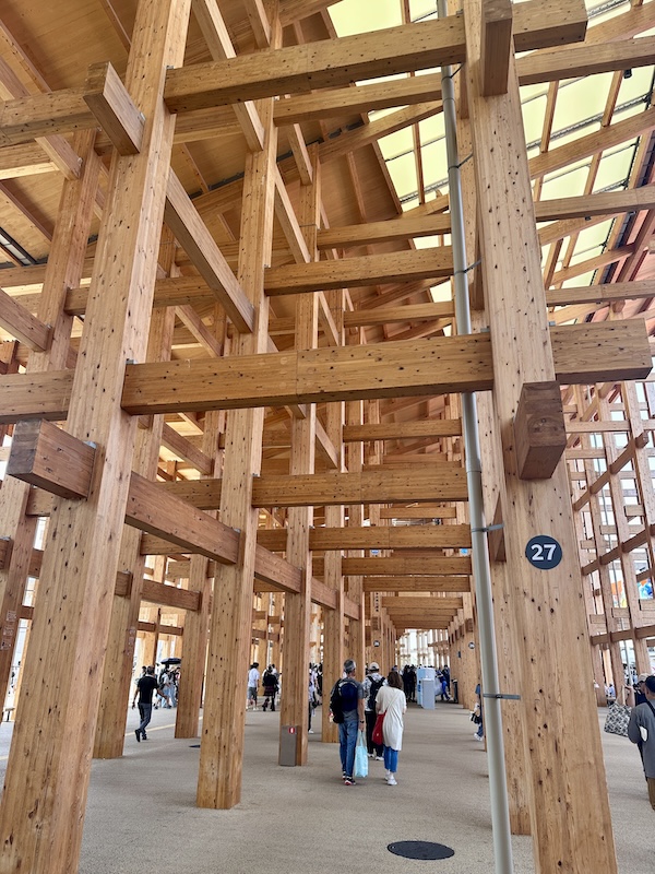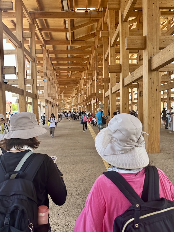 ゲート通過後はとりあえず、噂の大屋根リング下の日陰を目指してGO。とにかく暑くて冷感シートを首に巻きつけながらの移動です。さ〜て、どこ行く??