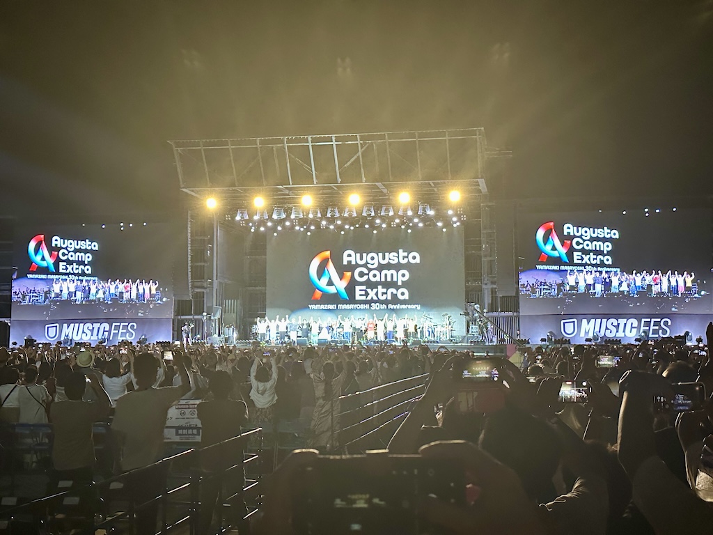 そして、EXPOアリーナへ。通常のAugusta Campは半日がかりで行われるのですが、今回はU-NEXT MUSIC FESの1イベントとして 2時間のショートバージョンで開催されました。チケット当選者は万博入場料以外無料という事もあってか、Augusta Camp常連客が6割、初めての客が4割といった感じでした。