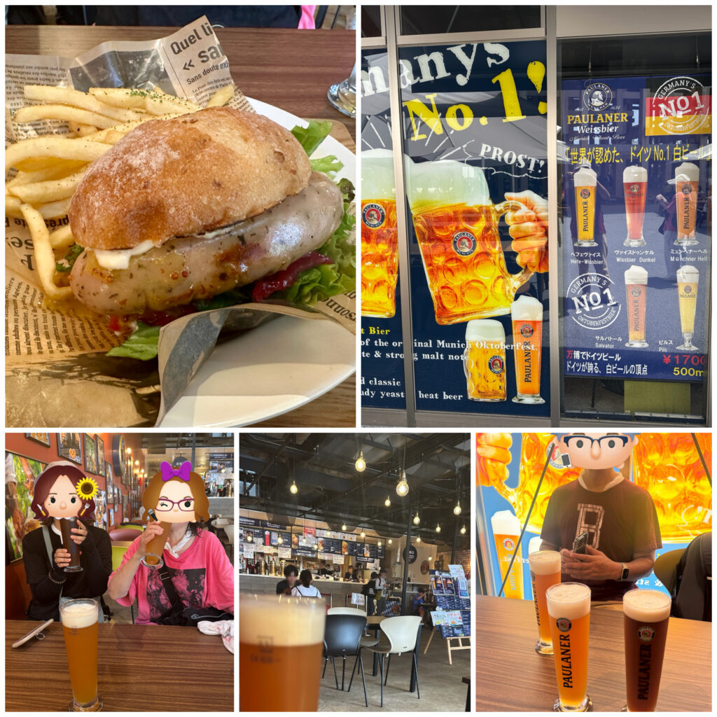「パウラナー」という製造元のドイツビールで喉を潤して「ヴラートヴルストバーガー」というバジルソーセージを挟んだバーガーにかぶりつきました。価格は万博価格だけど、本場のドイツビールだからなのか、単純に暑さのせいか、兎に角とても美味しかった〜(ような気がする)。