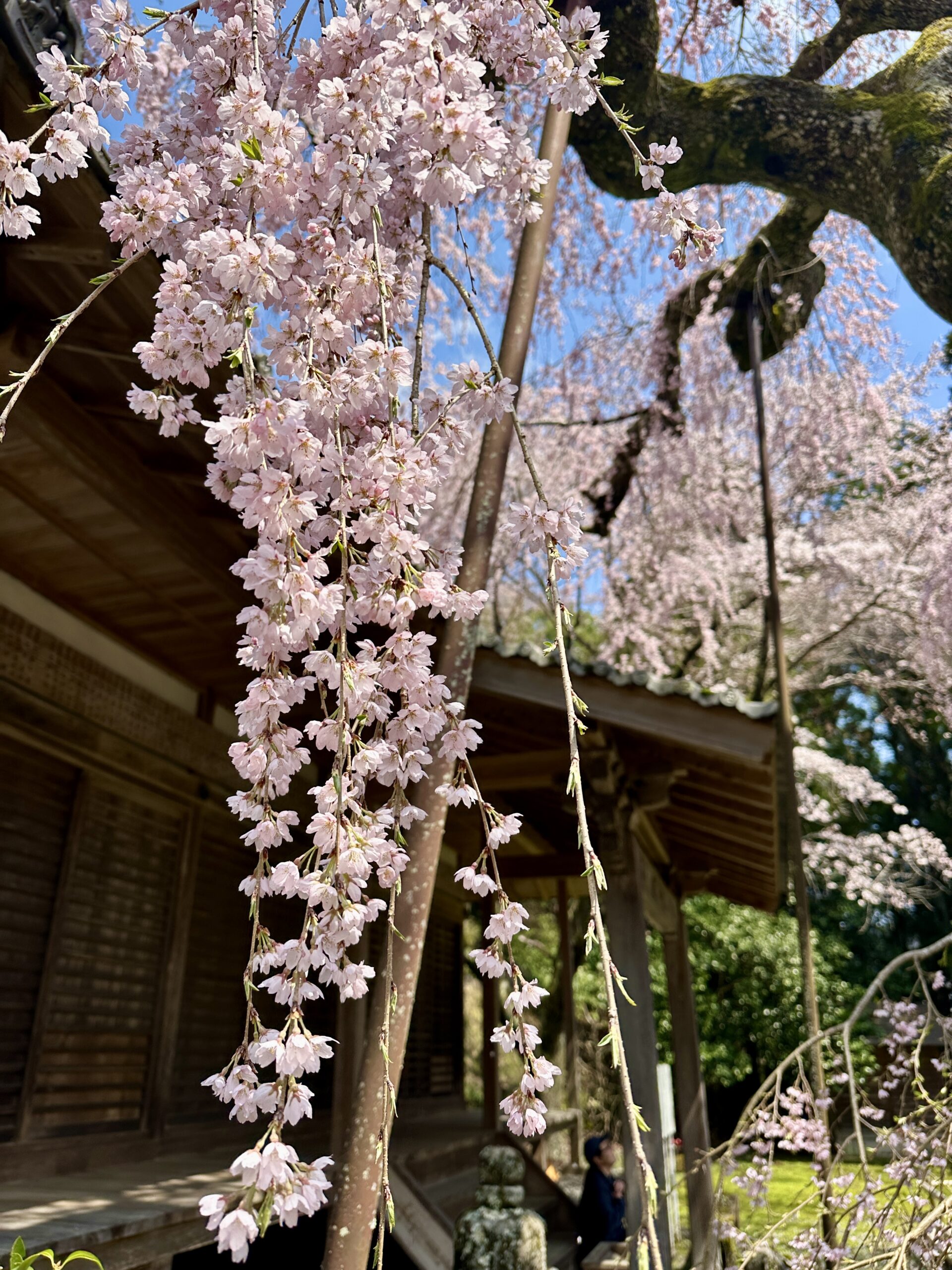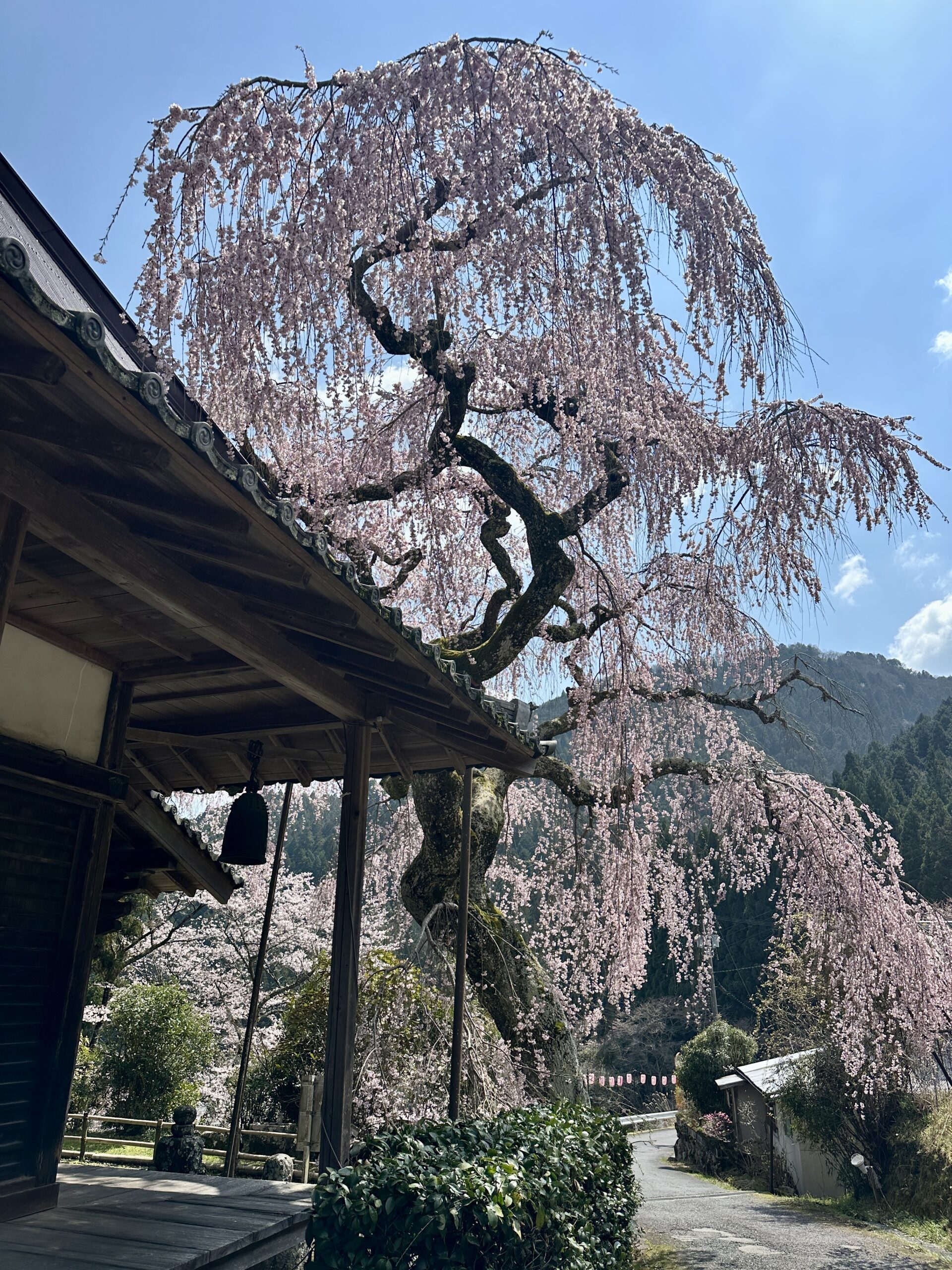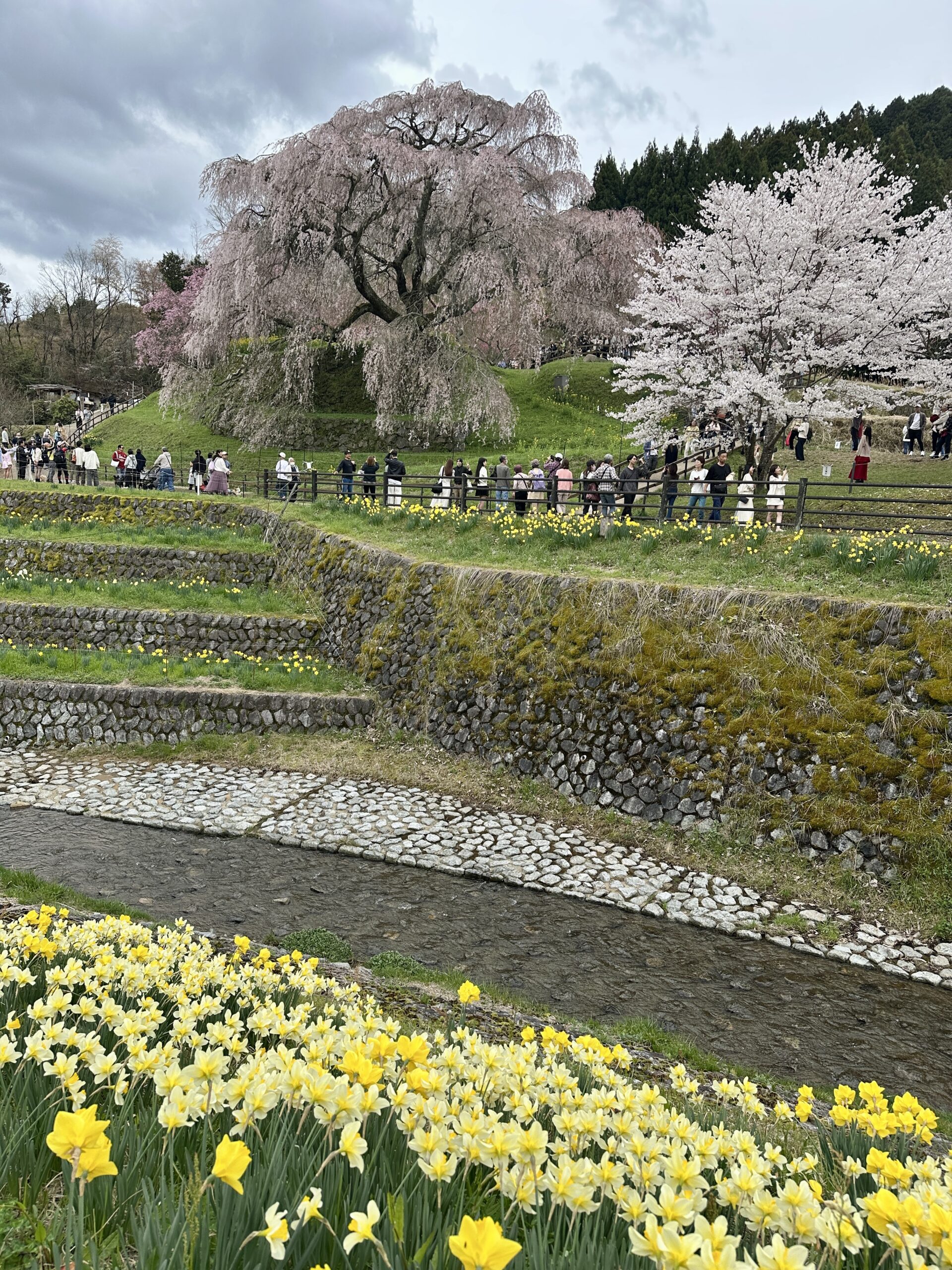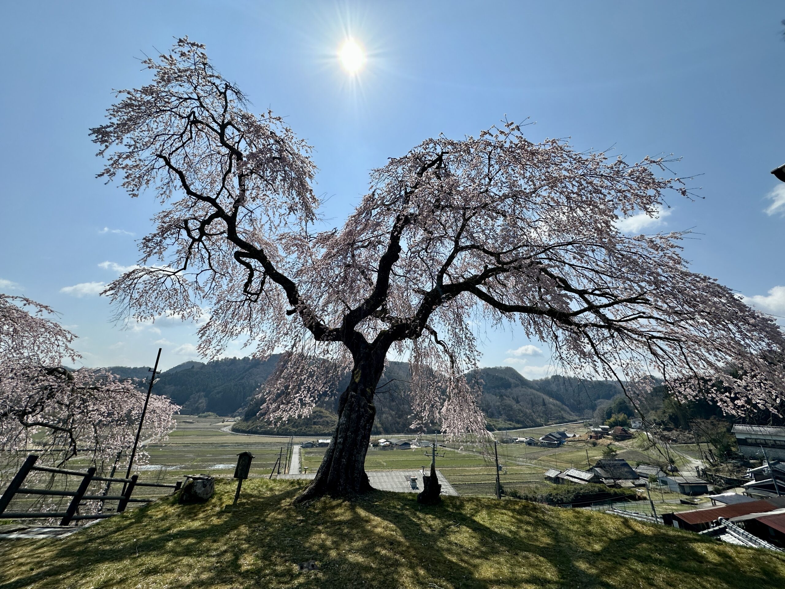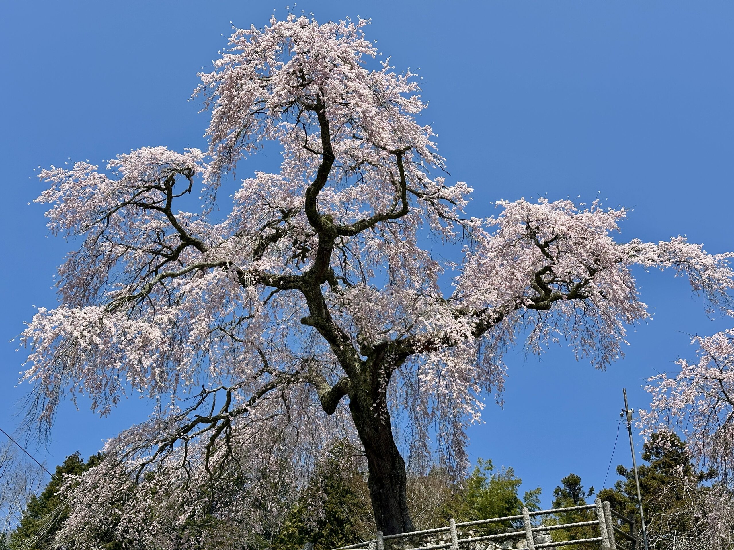 ガイドツアー当日の又兵衛桜です。ツアーではこちらを終着点としました。前日の雨で残念ながら見頃は少し過ぎてしまっていましたが、テレビやSNSで情報が拡散されるため益々人気が高まり、周辺道路は大渋滞でした。この日に車で出かけた人は、駐車場への入場待ちが2時間だったとか。。