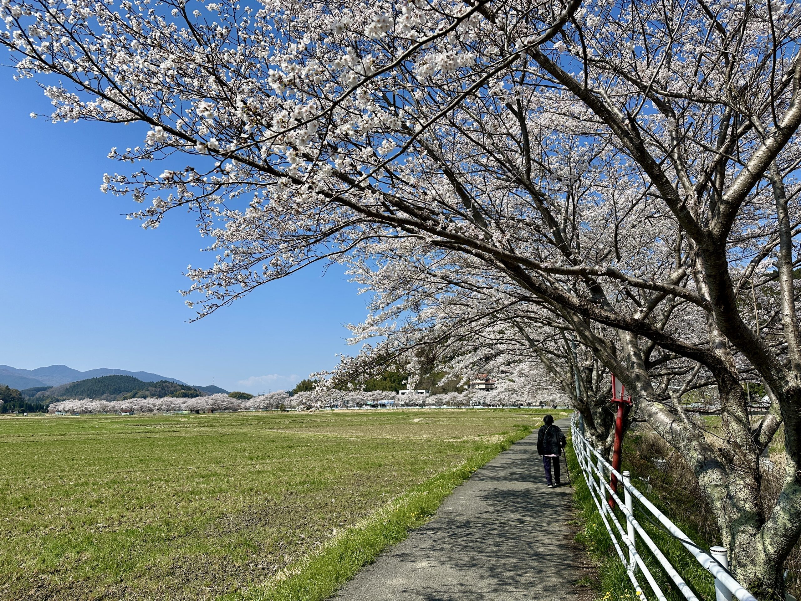 翌日午前中の「猟路の桜」です。壬申の乱をテーマに榛原から大宇陀まで10kmあまり歩くガイドツアーを二日後に行うため、その下見も兼ねてクロスバイクで巡りました。この日も快晴でした。