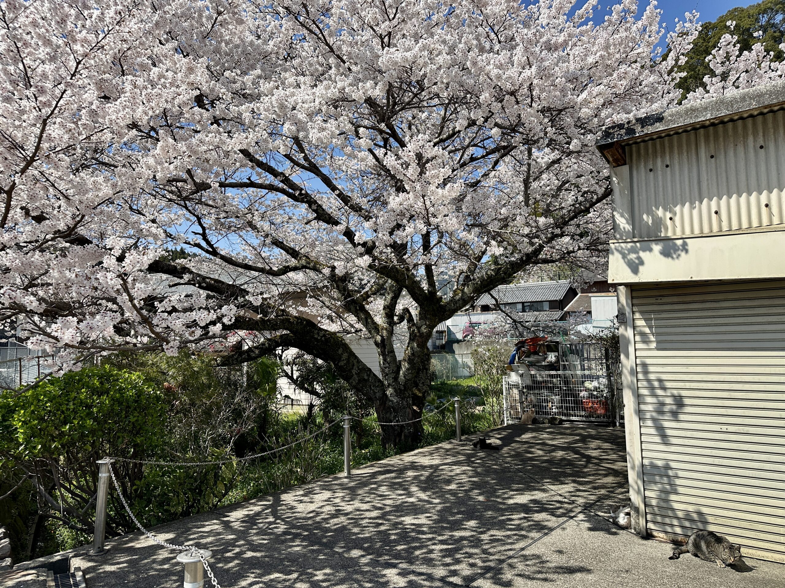近所のスーパー横の桜。相変わらず花付きがすごい。 ん? 猫が増えてる!?
